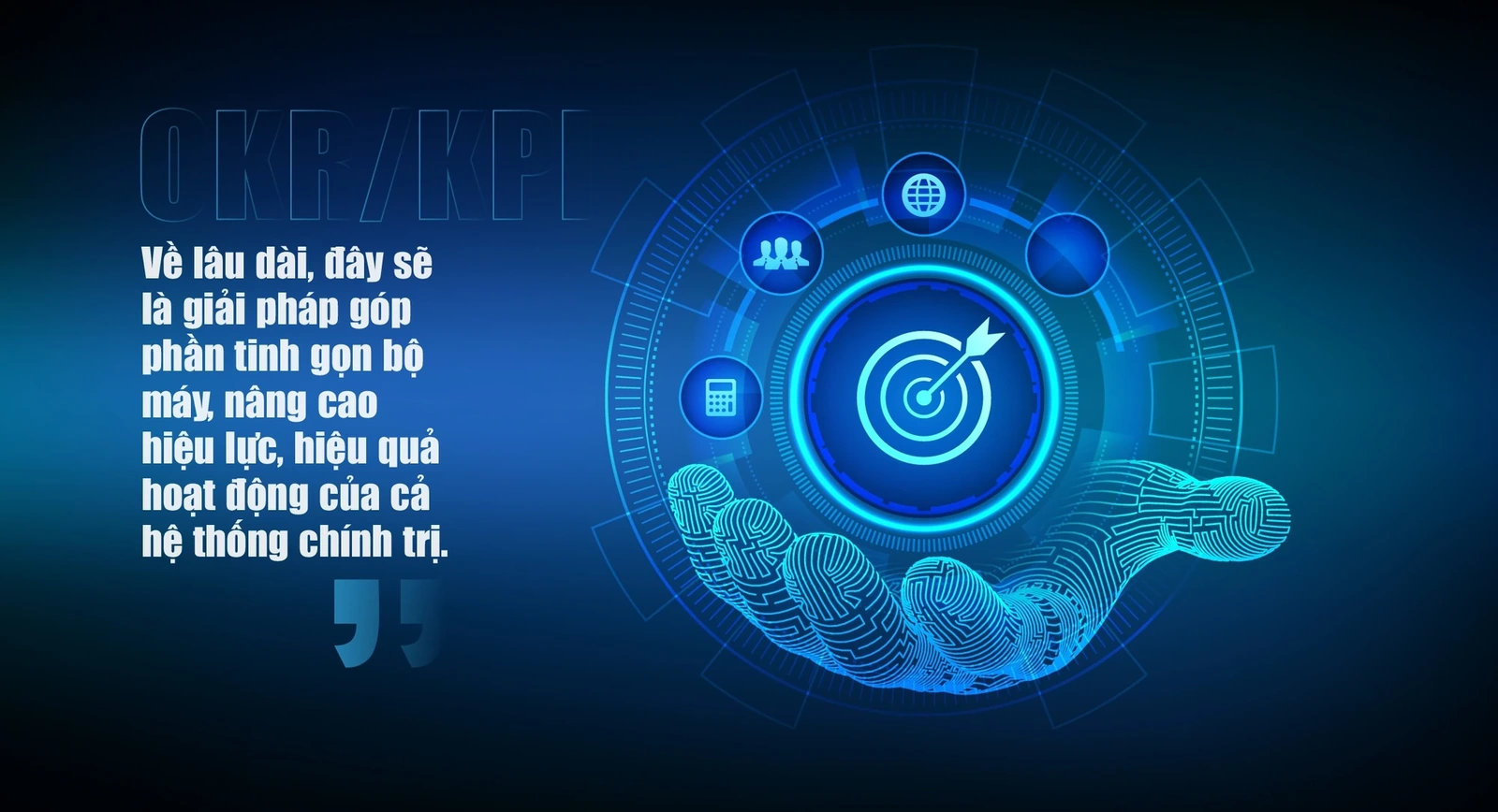 Hiểu một cách đơn giản, đây là mô hình quản trị hướng tới việc xác định rõ mục tiêu, lượng hóa kết quả và theo dõi tiến độ bằng dữ liệu. Về mặt khái niệm, OKR là phương pháp xác lập mục tiêu và các kết quả then chốt cần đạt; KPI là hệ chỉ số dùng để đo mức độ hoàn thành công việc, mức độ đạt mục tiêu và hiệu quả thực thi. OKR trả lời câu hỏi “chúng ta phải đạt điều gì”, còn KPI trả lời câu hỏi “chúng ta đạt đến mức nào”. Đây không phải là “phần mềm chấm điểm” hay một dự án công nghệ tách rời quản trị; mà hệ thống OKR/KPI sẽ tạo lập kiến trúc quản trị mới, cho phép chuyển toàn bộ quá trình "lãnh đạo - tổ chức thực hiện - kiểm tra - đánh giá" từ phương thức thủ công, phân tán sang phương thức số hóa, liên thông dữ liệu và đo lường được kết quả. Hệ thống tạo ra 05 nhóm giá trị cốt lõi: